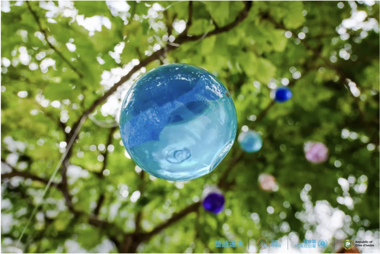 ©联合国环境规划署图片 | 艺术装置《无塑》废旧奶茶饮料瓶