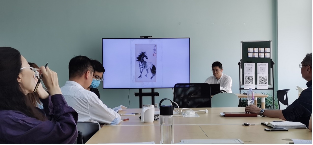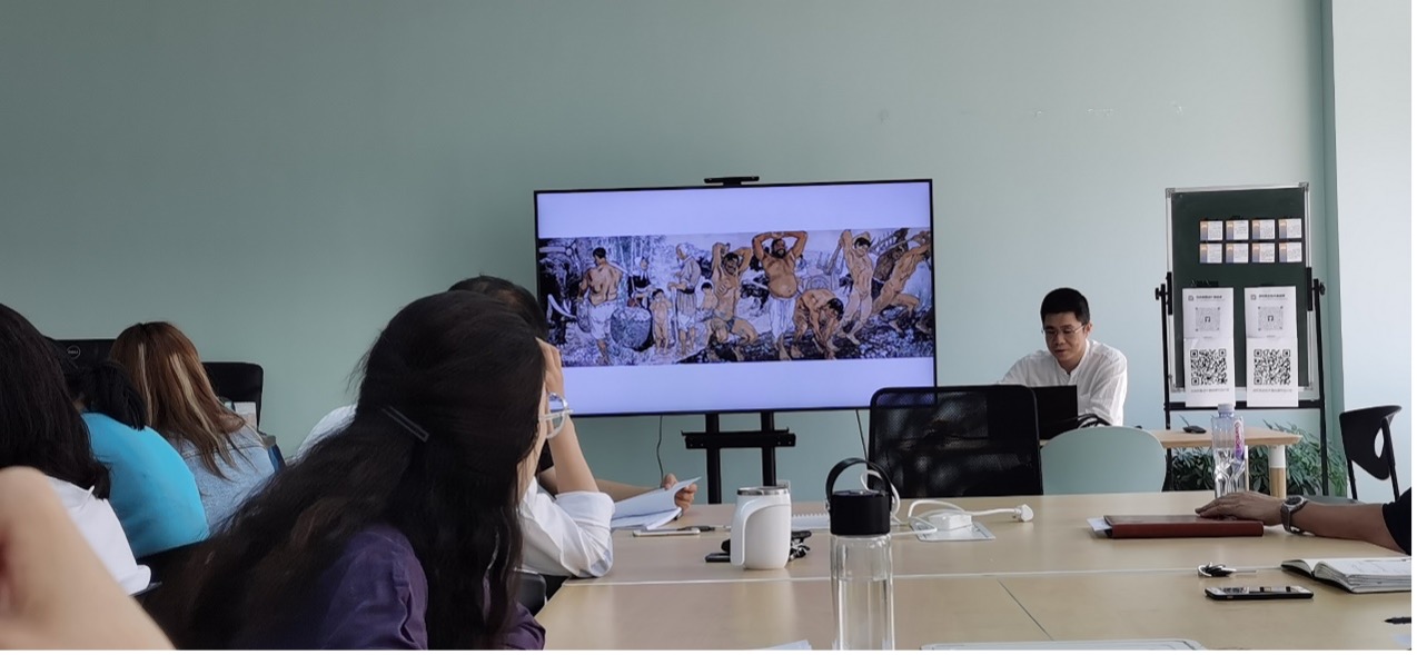 62日下午,博彩导航 在新主楼B332组织召开了全体教职工党课“学习日”活动。博彩导航 王群书记介绍了学习的主题:美术经典中的党史学习之徐悲鸿绘画中的红色精神,该讲座由党员教师赖盛老师主讲。