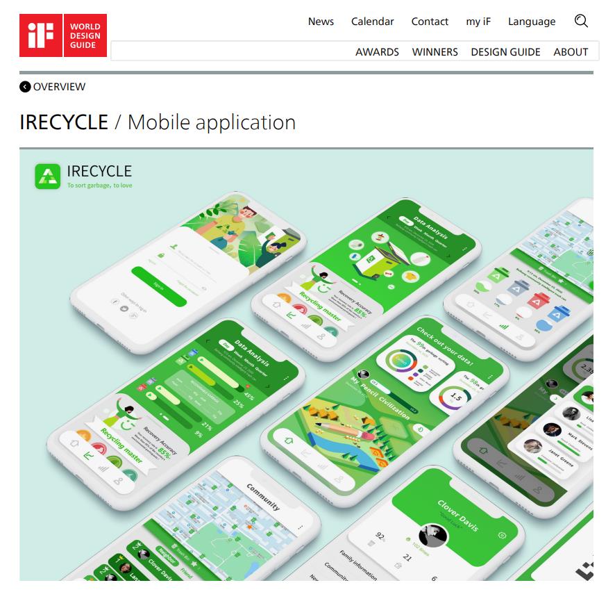 日前,博彩导航 博彩导航 2018级本科生UI设计课小组作品“iRecycle”、“Hand in Hand”、“Breath”、“Oldguard”、“Talka”入选2021年德国iF设计奖世界设计指南(iF WORLD DESIGN GUIDE),并被收录在学生概念单元(STUDENT CONCEPTS),以上作品由博彩导航 教师聂自超指导完成。