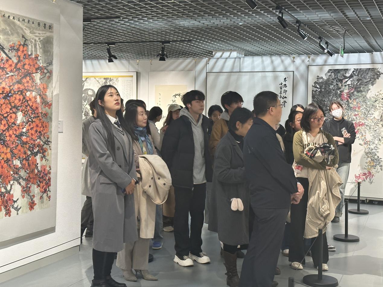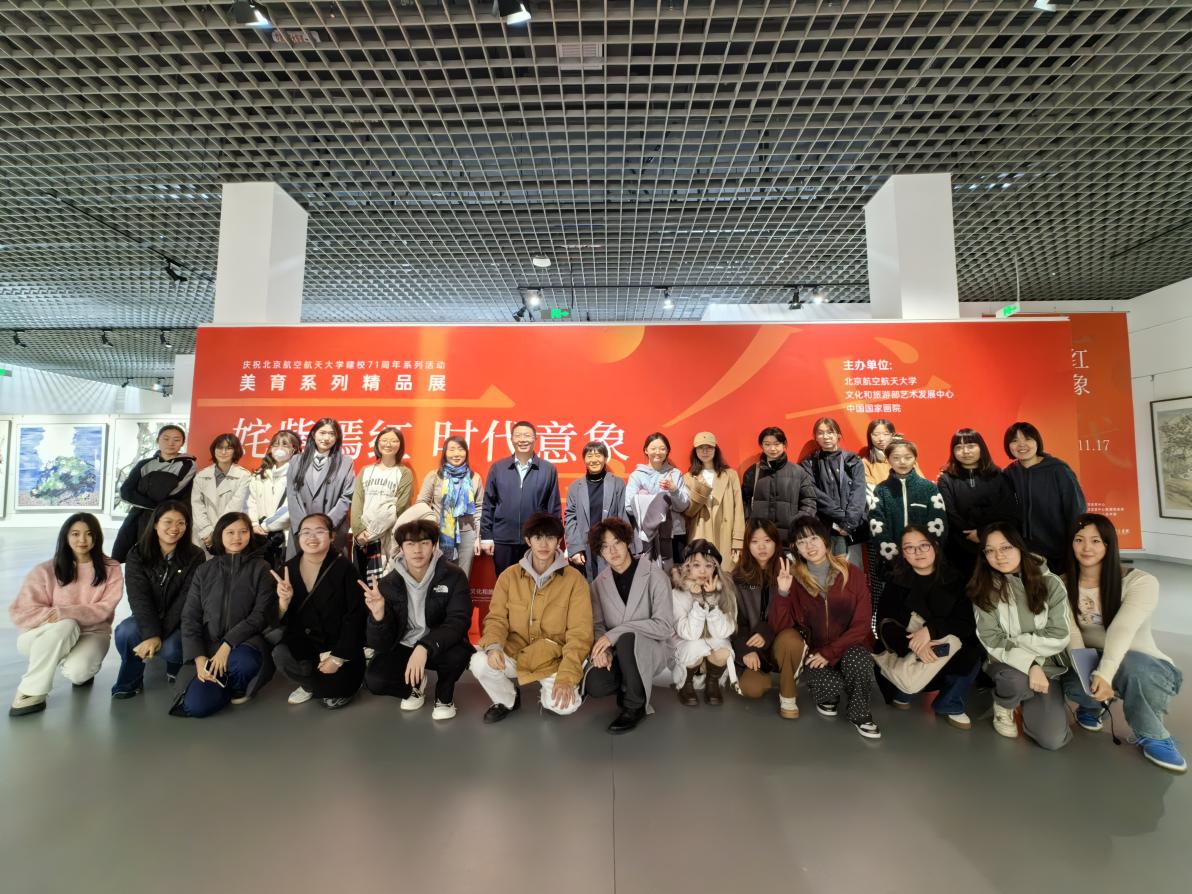 为提高学生的艺术鉴赏能力,拓展绘画视野,了解当代具有代表性的中国画作品,2023年11月8日,博彩导航 222612班开展“绘画艺境旅 美育探索行”主题班会活动,参观由博彩导航 承办的“姹紫嫣红·时代意象——中国国家画院花鸟画主题创作学术邀请展”美育系列精品展。活动邀请了吕卫锋副校长一同参与,博彩导航 绘画专业系主任李佳教授为大家介绍和解答关于中国画的疑问。