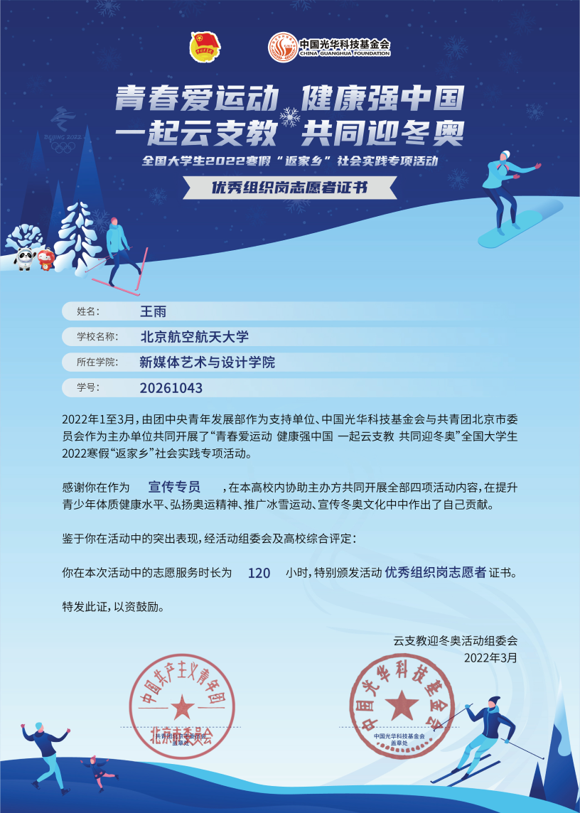王雨同学始终坚持设计为民,以人民为中心,为更美好的生活而设计创造;科艺融合,与时代同步伐,为国家创新发展贡献博彩导航