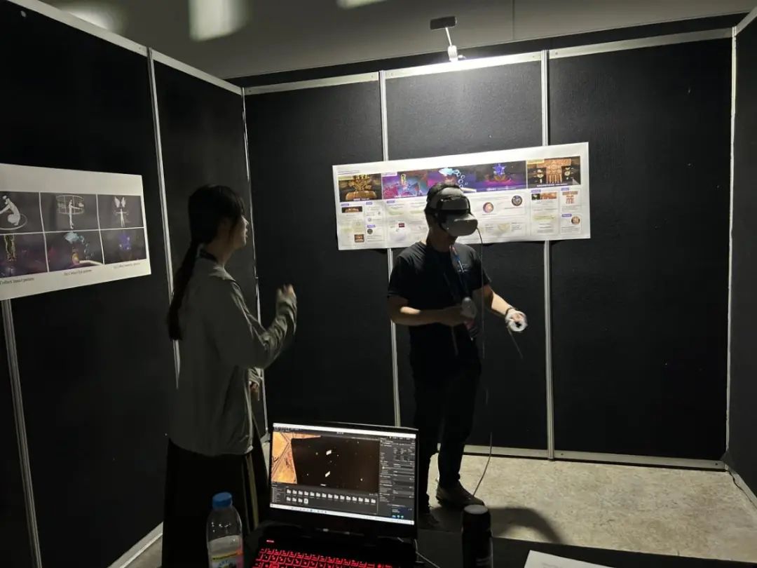守正创新,用设计讲好中国故事。基于苗族古歌非遗传播困难的现状,独立开发 VR 原型助力活态传播,从对唱互动叙事、身体隐喻交互、知识游戏化三个方面为未来口头类非遗的虚拟交互叙事设计提供一种思路,相关研究成果以第一作者身份在国际顶级会议 SIGGRAPH Asia XR上发表,并在悉尼国际会展中心线下展演。