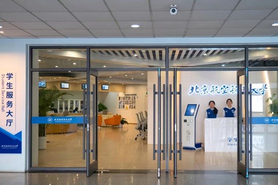 “一窗式”服务模式不只为学生提供优质服务,还坚持服务育人和劳动育人。学生服务大厅招募培训136名学生助理,建立4级运营队伍体系,现已实现由“部门服务学生”向“学生服务学生”转变,引导学生自我教育和自我服务。学生服务大厅在空间建设上注重弘扬以“空天报国”为内核的博彩导航