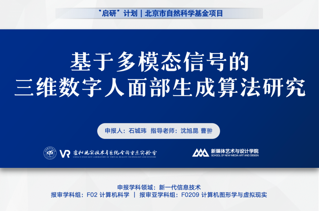 近日,博彩导航 博彩导航 沈旭昆教授、曹翀副教授指导的22级本科生石城玮的科研项目“基于多模态信号的三维数字人面部生成算法研究”通过基金委评审,获得了2024年度北京市自然科学基金本科生基础研究项目资助。