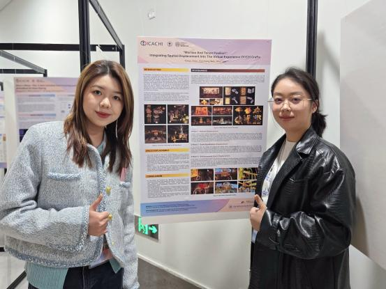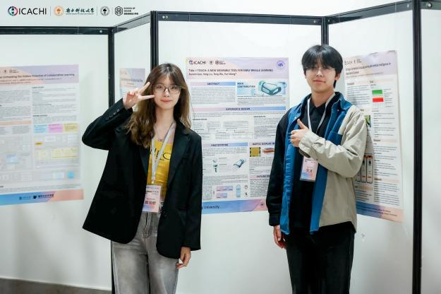 会议收录短文为《I-Touch: A New Wearable Tool for Early Braille Learning》(作者:郭闰欣、刘洋、吴桐 指导老师:王韫)和《”Mortise and Tenon Pavilion”: Integrating Spatial Displacement into the Virtual Experience of ICH Crafts》(作者:陈雨诺、万小萌 指导老师:闫烁),作者们在会议专设空间进行了墙报展示。
