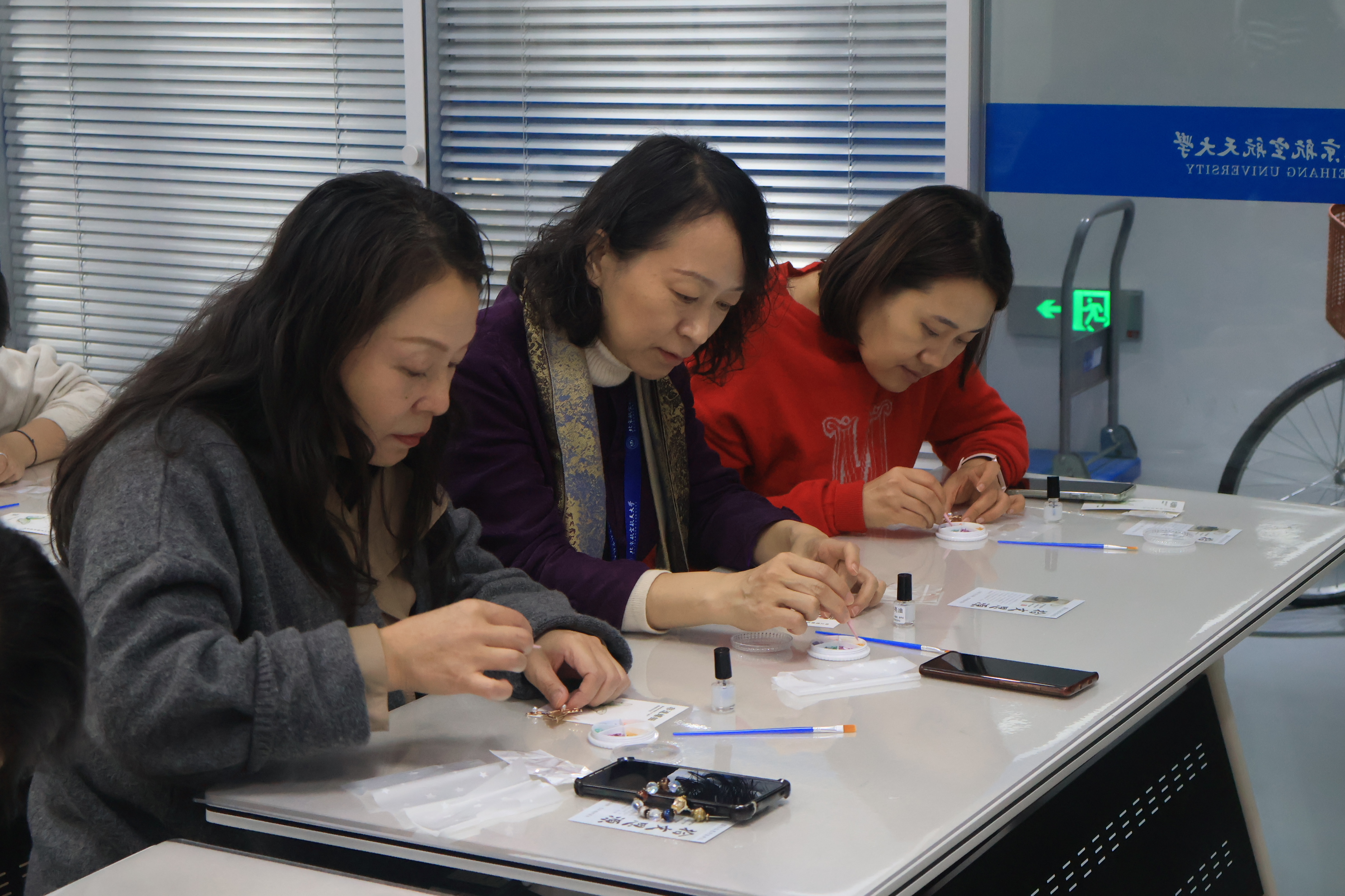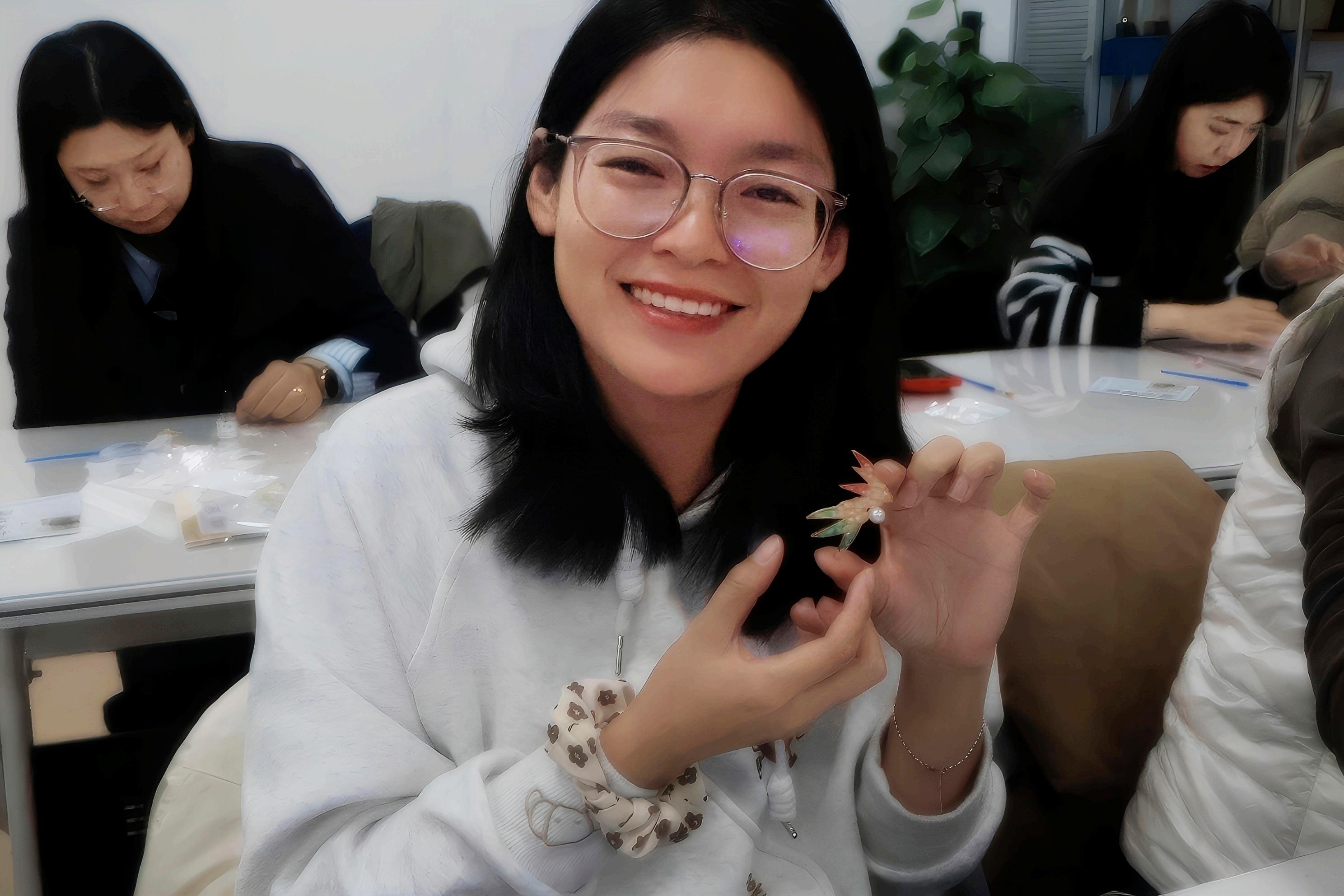 活动现场笑语盈盈,近50名参与者均顺利完成作品,不少老师当场佩戴上自己亲手制作的螺钿胸针,脸上洋溢着满满的成就感。大家纷纷表示,这次体验不仅学会了一项传统手艺,更在慢下来的创作过程中释放了工作压力,深刻体会到“工匠精神”中专注、严谨的内核。来自不同机关部处与博彩导航 的教职工们通过活动增进了交流,在共同感受非遗之美的过程中凝聚了情感。