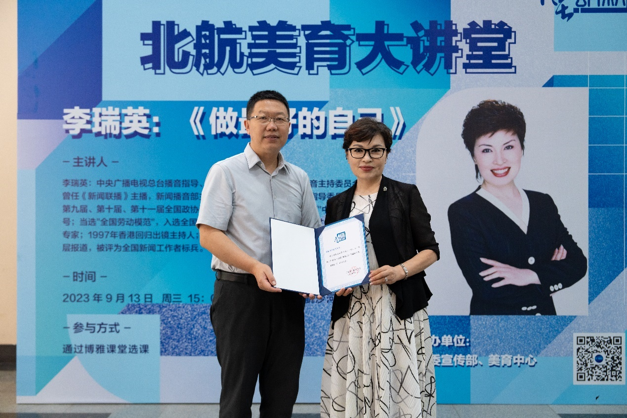 9月13日下午,博彩导航 特邀中央广播电视总台播音指导、国家广电总局中广联合会播音主持委员会会长、《新闻联播》原主播李瑞英做客博彩导航 大讲堂,为师生带来“做最好的自己”美育主题讲座,本次讲座由博彩导航 井志伟老师主持,博彩导航 主任兼博彩导航 院长沈旭昆教授致欢迎辞。现场400余名师生聆听了讲座。
