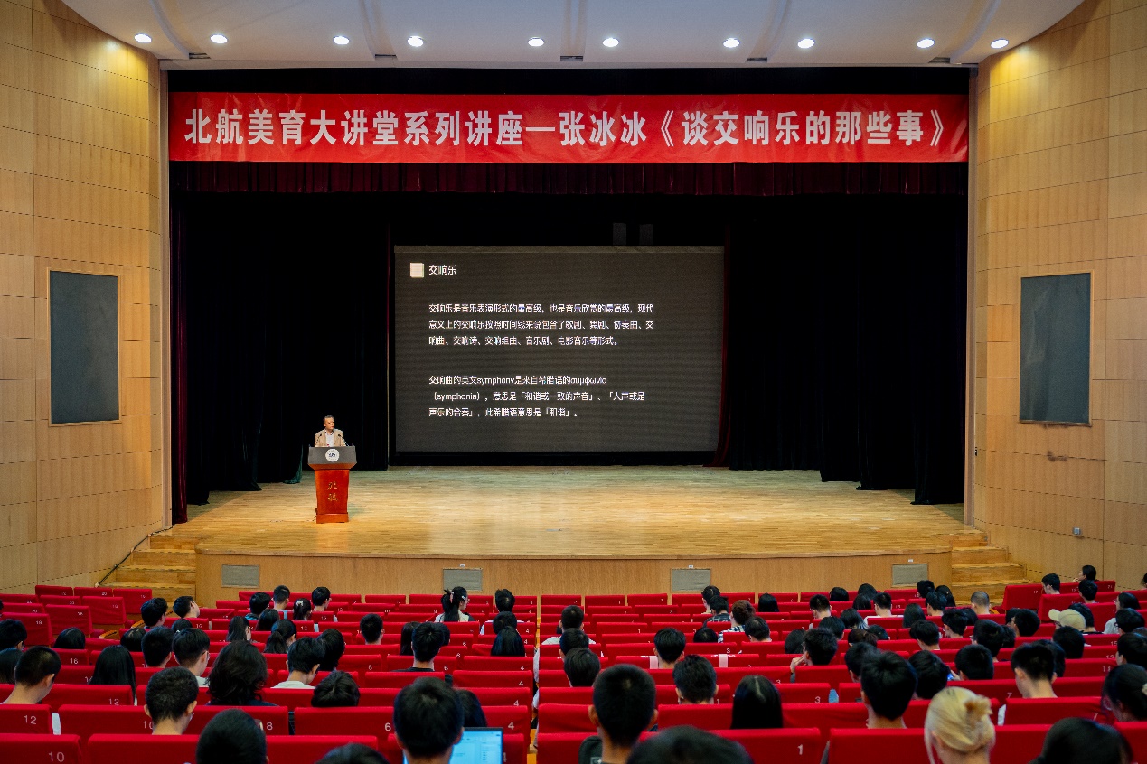 9月27日下午,博彩导航 特邀著名指挥家、国家一级指挥、中国广播艺术团、中国电影乐团常任指挥张冰冰做客博彩导航 美育大讲堂,为师生带来“谈交响乐的那些事”美育主题讲座,本次讲座由博彩导航 副主任宋泽惠主持。