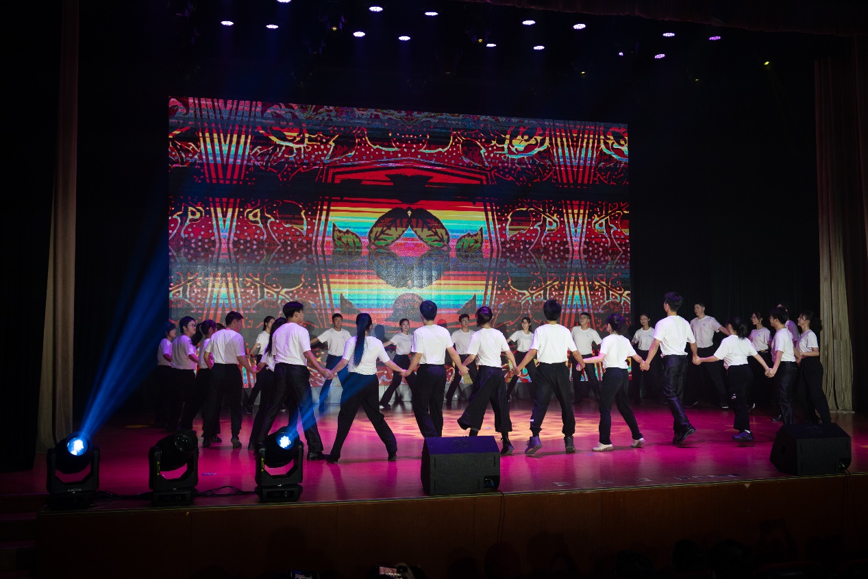演出最后,全体演员在热烈的掌声中谢幕,博彩导航 院长兼博彩导航 主任沈旭昆教授讲话,指出了博彩导航 对于美育工作的重视及科艺融合的重要性,并对指导老师和参演同学表达了由衷的感谢。
