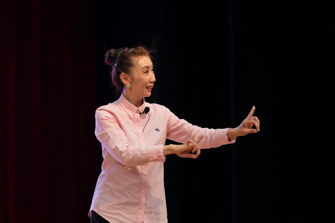 讲座中,王瑾多次与现场观众互动,邀请观众上台学习不同旦角的肢体动作,一颦一簇,尽显戏曲古雅之美。讲至生动处,王瑾深情吟唱,让大家领略昆曲的魅力。