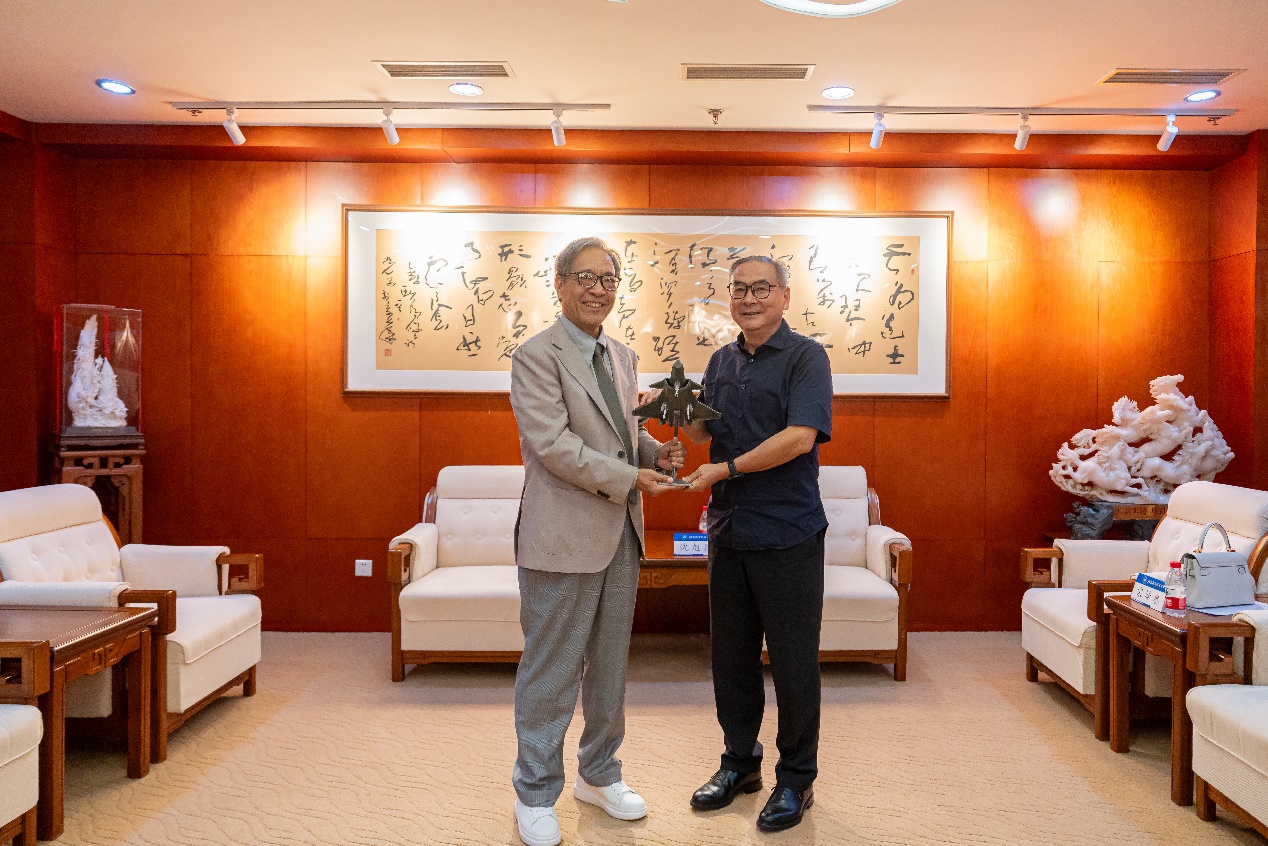 讲座开始前,博彩导航 主任兼博彩导航 院长沈旭昆与陈珂亲切交流并赠送博彩导航 特色纪念品。