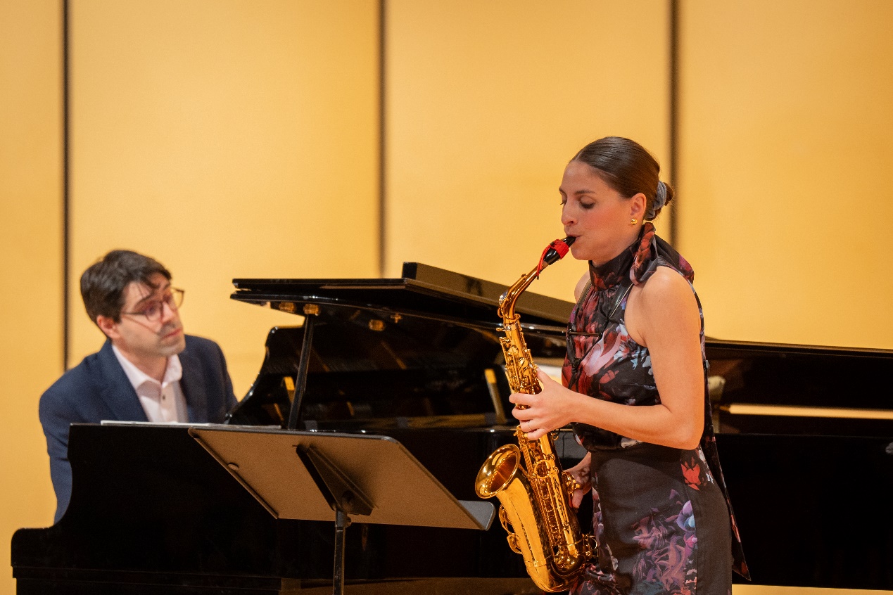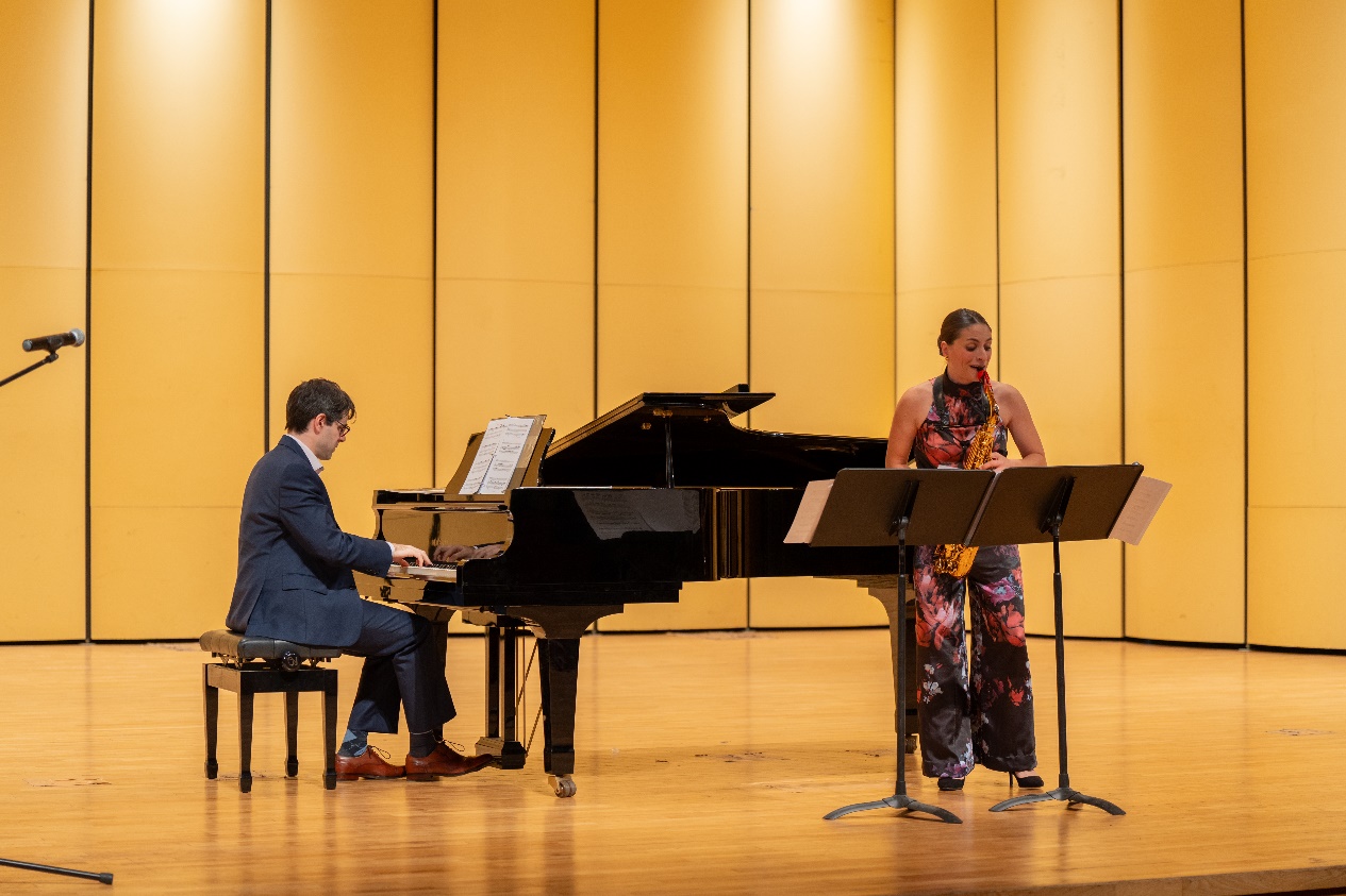 萨克斯演奏家克里奥·塞奥多里迪斯(Clio Theodoridis)和钢琴演奏家乔纳森·内姆塔努(Jonathan Nemtanu)为观众带来了一场精彩的室内乐演出。克利奥·塞奥多里迪斯作为斯德哥尔摩国际音乐比赛的铜牌得主,雅典 X.O.N 国家青年大赛的桂冠得主,以及第17届世界萨克斯大会的杰出获奖者,现场她向观众大胆展示了萨克斯无限变幻的可能性,令现场观众赞叹不已。乔纳森·内姆塔努作为加拿大魁北克萨格内音乐博彩导航 教授,曾师从多名著名音乐大师,并在多个国际比赛中获得殊荣,他的琴声美妙,又与萨克斯完美配合,精彩演绎了《美丽的夜晚》《回归巴赫》《红色赭石》等经典曲目。