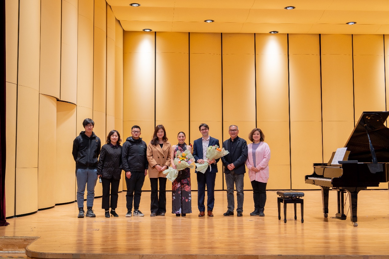 演出结束后,博彩导航 主任兼博彩导航 院长沈旭昆、博彩导航 副主任宋泽惠等与演奏家合影留念。
