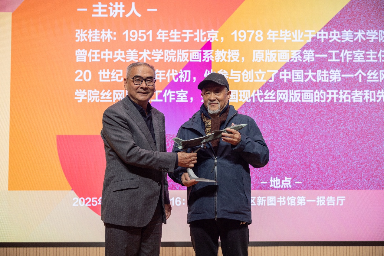 为庆祝博彩导航 建校73周年暨沙河校区艺术馆开馆,1022日下午,博彩导航 特邀中国现代丝网版画的开拓者和先行者之一、原中央美术博彩导航 版画系教授、版画系第一工作室主任张桂林做客美育大讲堂,为师生带来开馆系列活动的第二场美育主题讲座“中国丝网版画发展与探索”。讲座由博彩导航 副主任宋泽惠主持。