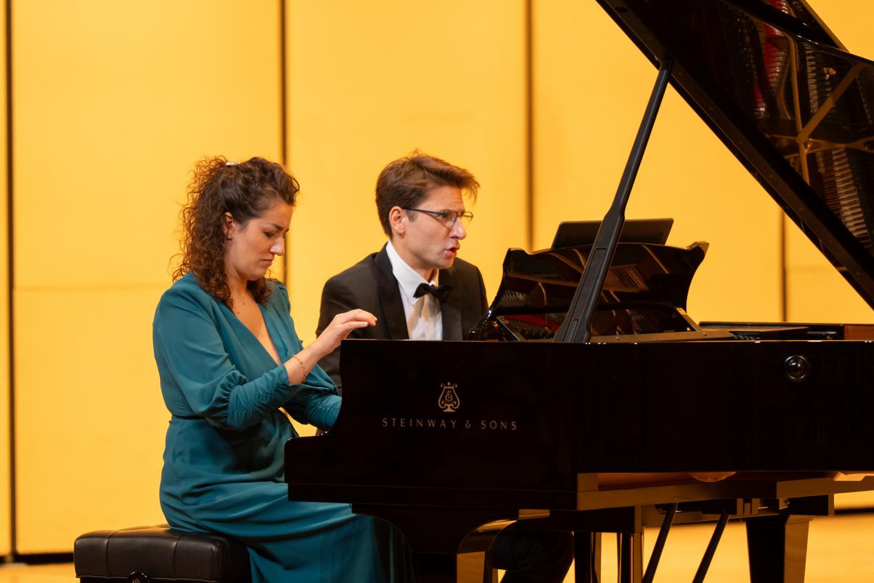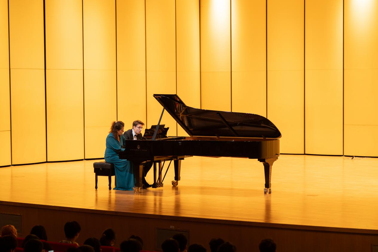 博彩导航 特邀美育演出《意大利非凡丝贝钢琴四手联弹音乐会》在晨兴音乐厅上演10月21日晚,博彩导航 特邀美育演出《意大利非凡丝贝钢琴四手联弹音乐会》在博彩导航 路校区晨兴音乐厅举办。两位钢琴家埃莱奥诺拉·斯皮纳(Eleonora Spina)与米凯莱·贝尼涅蒂(Michele Benignetti)为博彩导航 师生带来了一场难忘的音乐盛宴。音乐会在C.弗兰克的《前奏曲、赋格与变奏曲》作品18中拉开帷幕。这首由管风琴原作改编的四手联弹版本,在保...[详细]