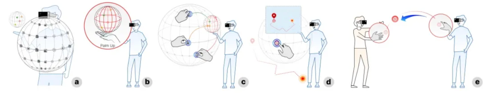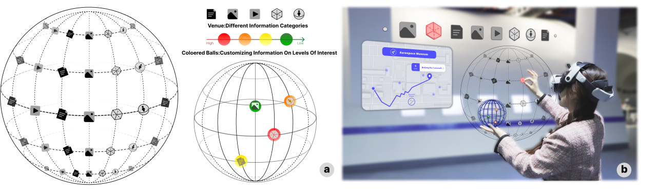 在本次Interactivity展示中,博彩导航 师生所展示的研究成果深入探讨了基于地球的信息显示优势与MR技术的融合应用。该成果突破了传统平面展示的限制,借助MR技术的虚拟现实优势,构建了专为博物馆和展览空间设计的3D多维信息显示和空间交互系统。该系统利用地球的经纬度描述作为信息组织的基础,结合球体特性设计了一系列创新的交互方法,旨在提升用户的空间感知和交互体验。这些交互方法包括激活、拾取、投掷、导航和跟随等,使得多个用户可以在同一设置中共享和协作,共同探索和学习。这一创新性的研究成果不仅为博物馆和展览空间的信息展示提供了全新的解决方案,同时也为人机交互领域的发展注入了新的活力。