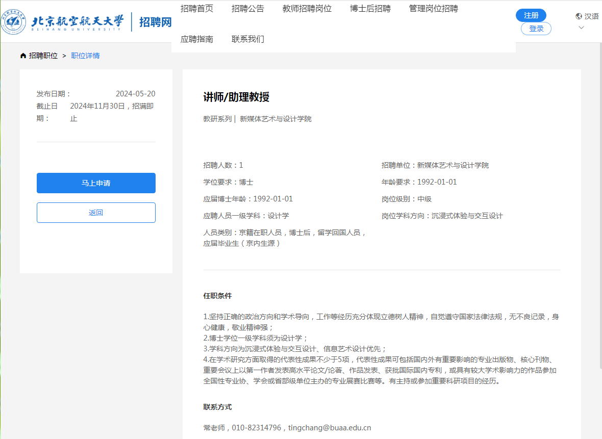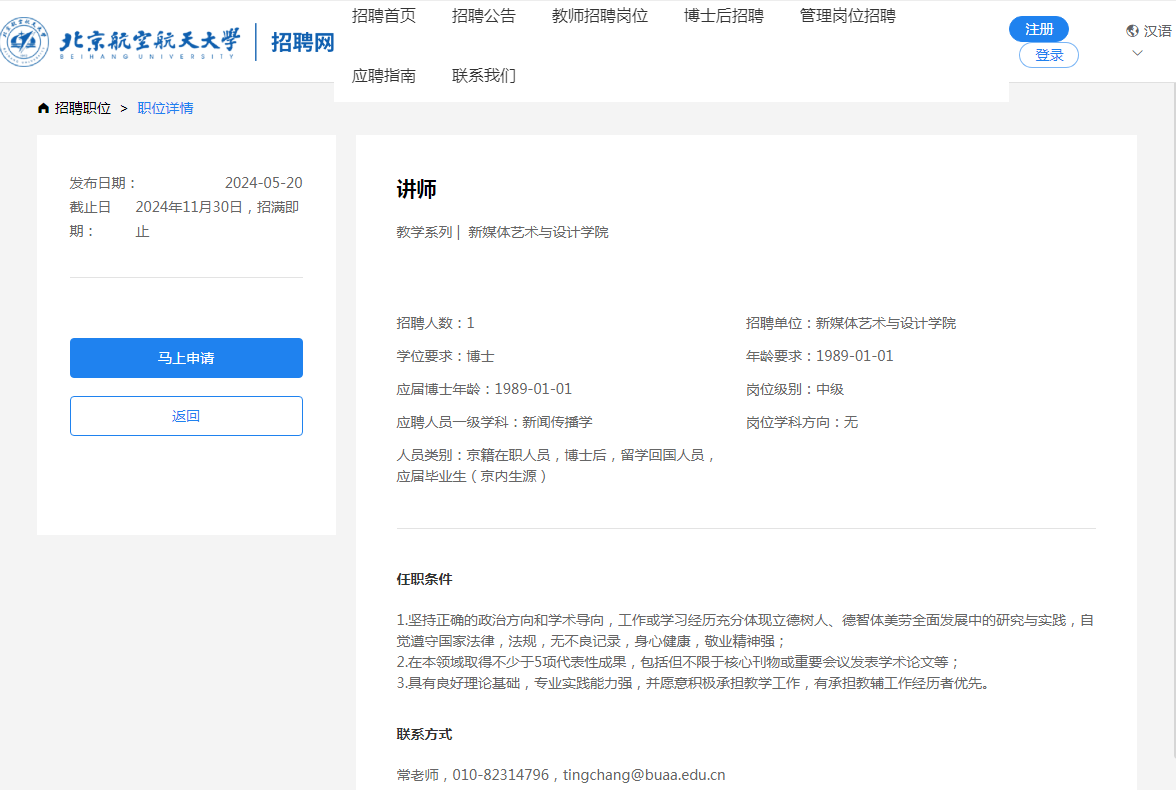 根据《事业单位公开招聘人员暂行规定》(人事部令〔2005〕6号)、《关于进一步规范事业单位公开招聘工作的通知》(人社部发〔2010〕92号)、《工业和信息化部所属事业单位公开招聘人员实施办法》(工信部〔2011〕153号)、《博彩导航 关于加强教师分系列招聘工作的指导意见》(博彩导航 校字〔2021〕4号)、《博彩导航 教师队伍分系列招聘管理办法》(博彩导航 校字﹝2022﹞70号)等文件规定和精神,经二级单位申报、博彩导航 审定,现将博彩导航 2024年度教师岗位招聘计划公布如下。