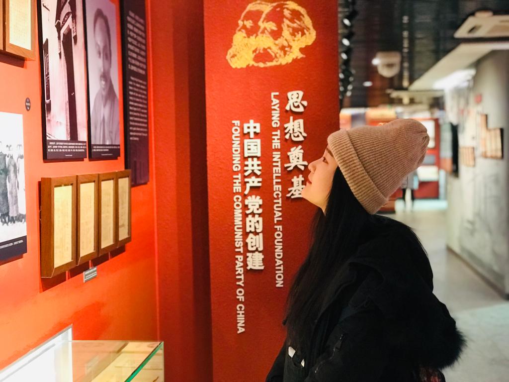 在各个展室的参观中,大家目睹了新文化运动时期著名人士的书信手稿、《新青年》原件和大量珍贵的照片,还参观了李大钊、陈独秀、蔡元培等人办公室旧址和新潮杂志社旧址复原地,参观了毛泽东同志曾经工作过的图书阅览室等。其中,在五四运动的发源地新潮杂志社旧址中,大量悬挂的五四运动标语、条幅等恢复了五四运动爆发前的原貌,使同学们仿佛回到1919年,让大家更加直观地、系统地回顾了五四运动爆发前后的历史。