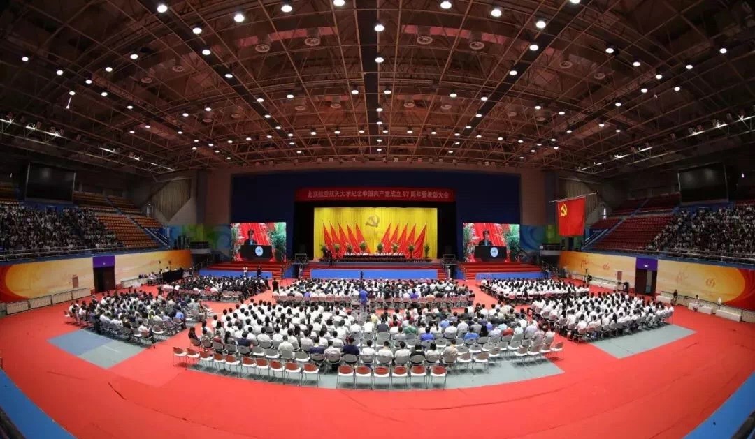 纪念中国共产党成立97周年暨表彰大会在体育馆隆重召开。