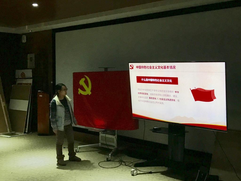 李嘉琪同学围绕“文化”这一关键词,从“中国特色社会主义文化基本情况”、“发展中国特色社会主义文化的原则”、“做中国特色社会主义文化的创造者与传播者”等三个方面,向党员和积极分子们讲解十九大报告中关于文化部分的内容。十九大报告中指出,坚定文化自信,推动社会主义文化繁荣兴盛。文化是一个国家、一个民族的灵魂。文化兴国运兴,文化强民族强。没有高度的文化自信,没有文化的繁荣兴盛,就没有中华民族伟大复兴。要坚持中国特色社会主义文化发展道路,激发全民族文化创新创造活力,建设社会主义文化强国。