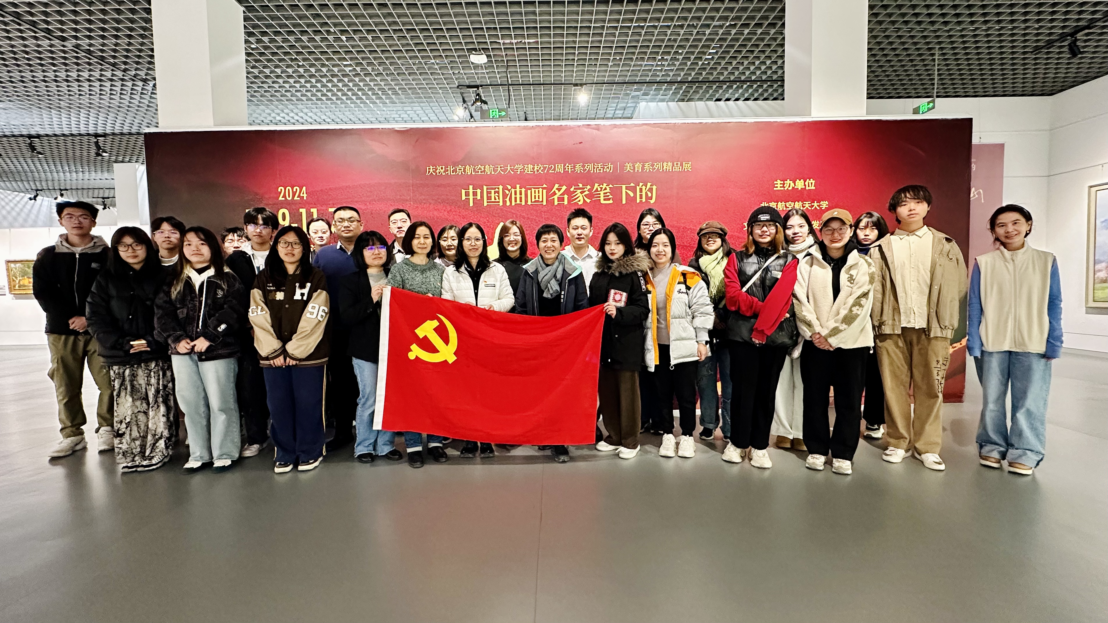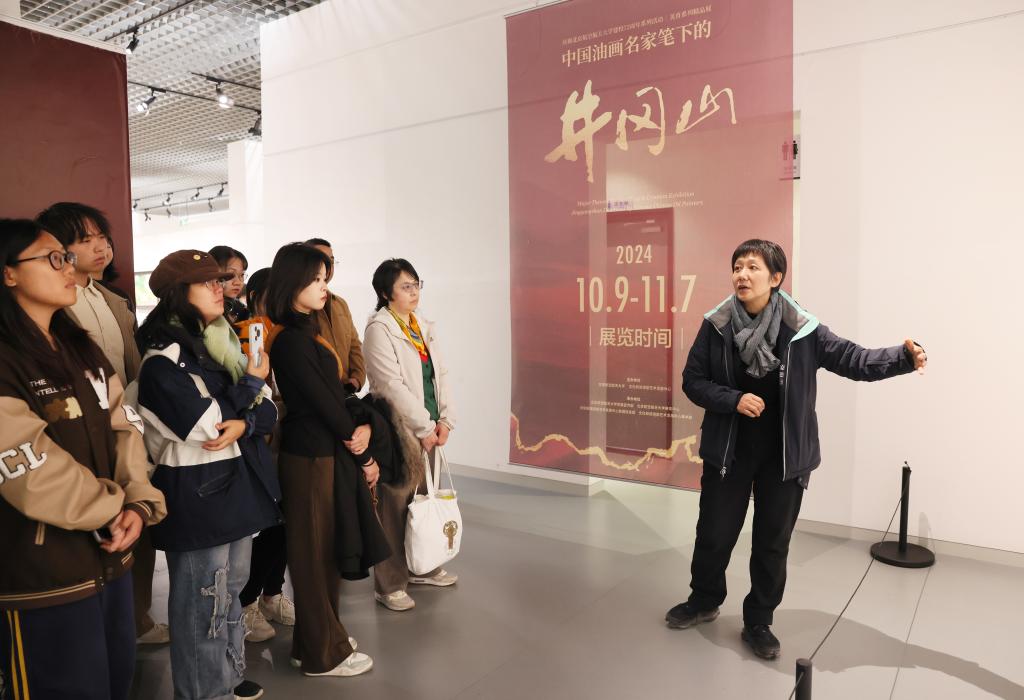 和习近平新时代中国特色社会主义思想学习研究会共同在逸夫科学楼五层组织师生参观“中国油画名家笔下的井冈山”美育系列精品展。